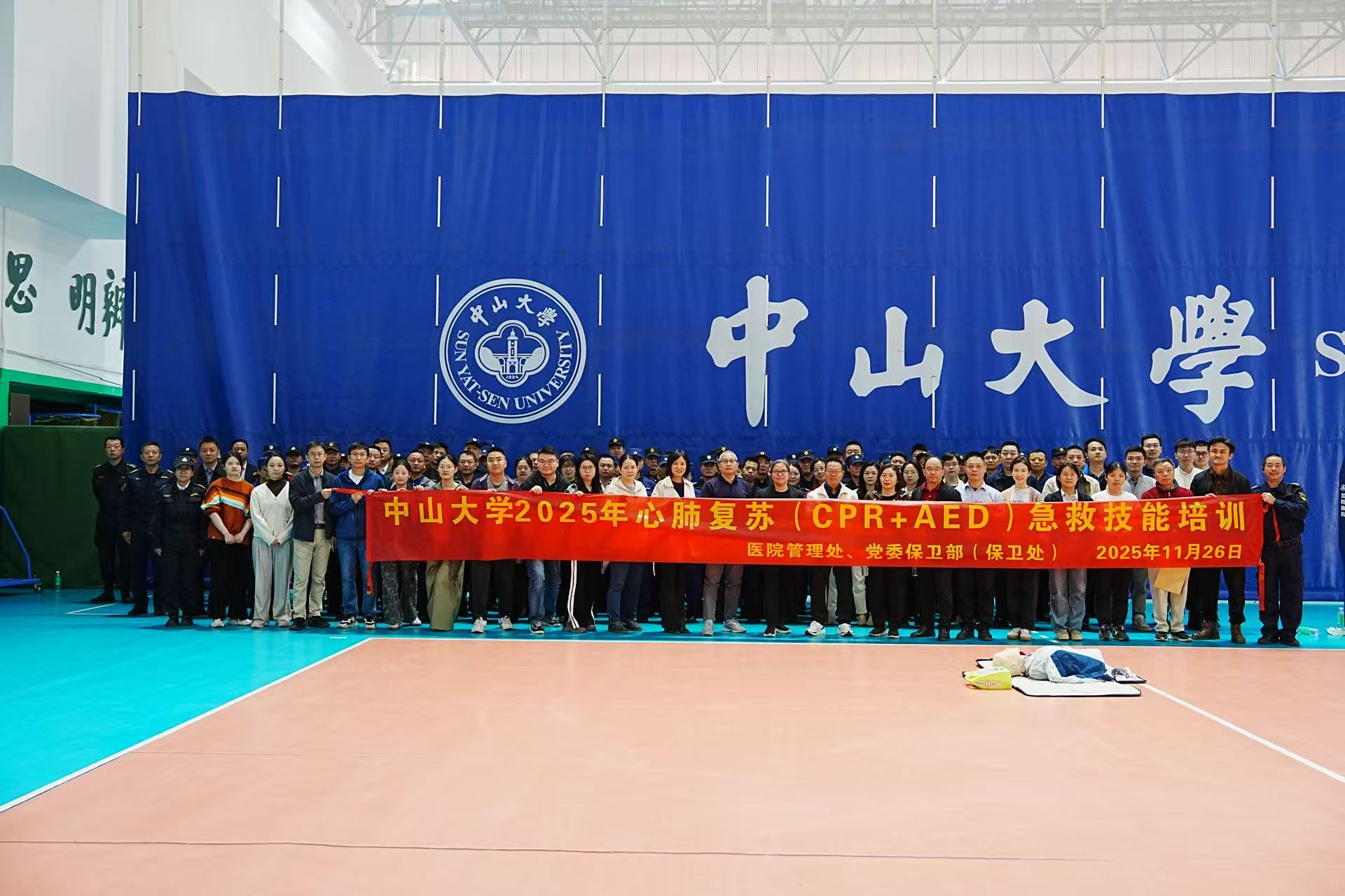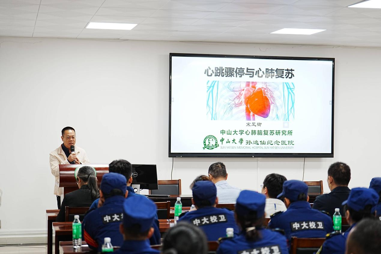 11月26日上午,广州校区南、北、东三校园共100名保卫部教职员工、安保骨干齐聚康乐园,在英东体育馆参加培训。培训前,党委保卫部岑立全部长向全体参训人员强调了在校园安保工作实际场景中,有效掌握急救知识和急救技能的必要性,并勉励大家认真学习、参训。