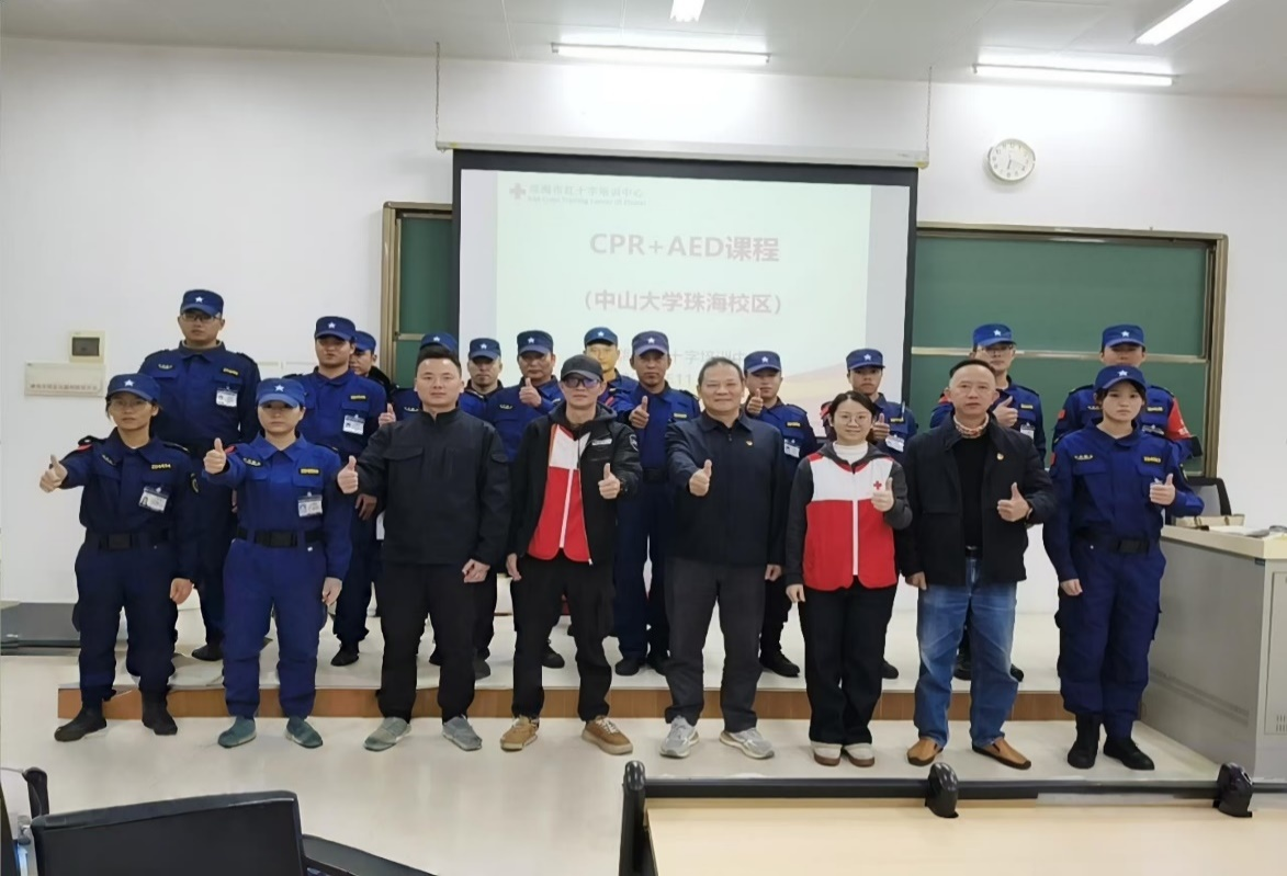 为全面加强校园应急救护能力,保障师生生命健康安全,在深圳校区安保骨干接受常态化急救培训的基础上,永利集团3044官网联合党委保卫部(保卫处)、孙逸仙纪念医院、珠海校区管理委员会、珠海市红十字会开展全校安保骨干心肺复苏(CPR+AED)急救技能培训,共123人参训并全员通过考核获得急救培训证书。