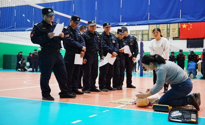两校区安保骨干认真进行急救实操训练